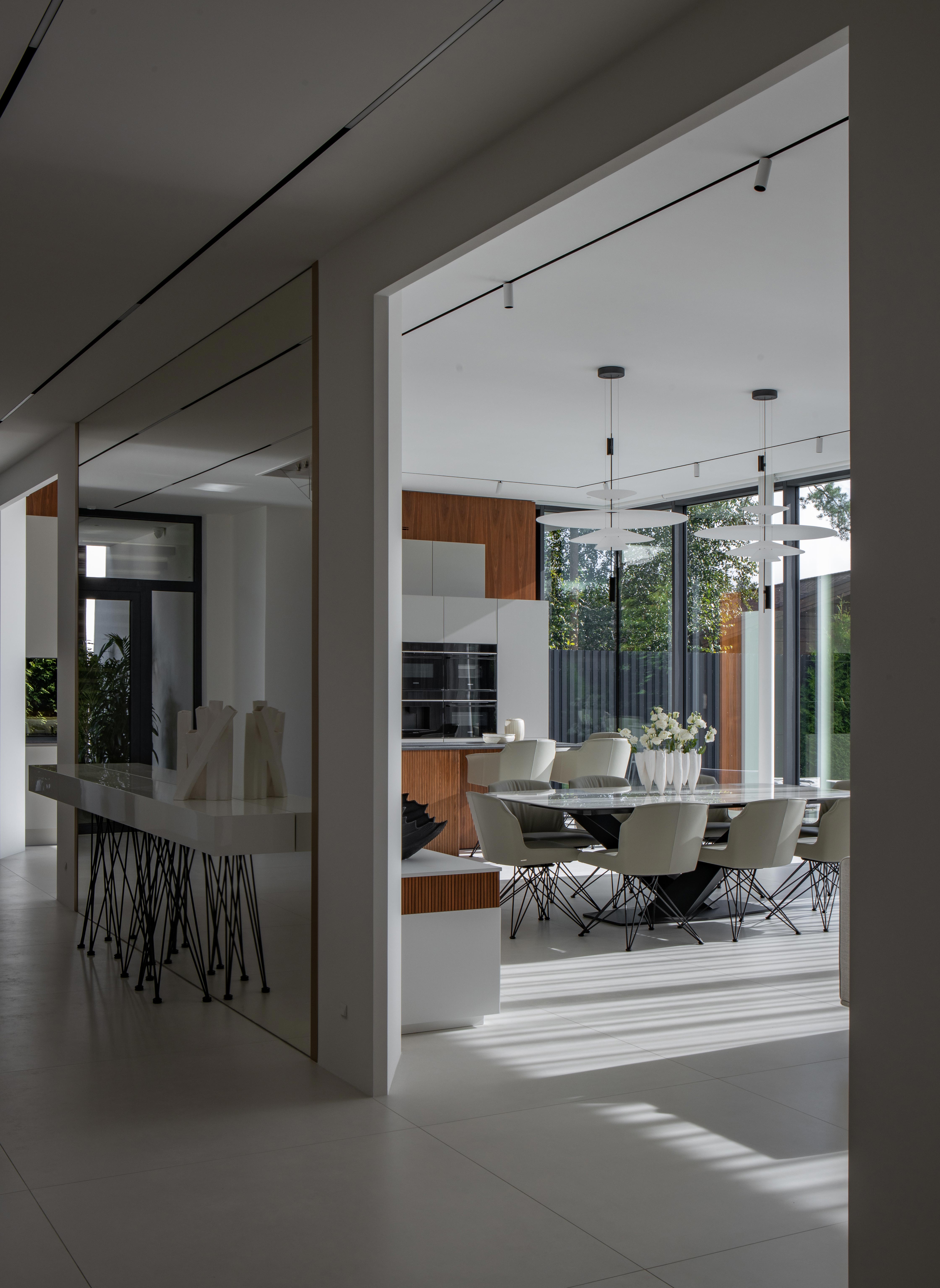 Дом "Онегин Парк" расположен в пригороде Санкт-Петербурга. Чистые линии, сдержанная палитра и приоритет естественного освещения. Решение пространства акцентирует взаимосвязь интерьера с окружающим ландшафтом.