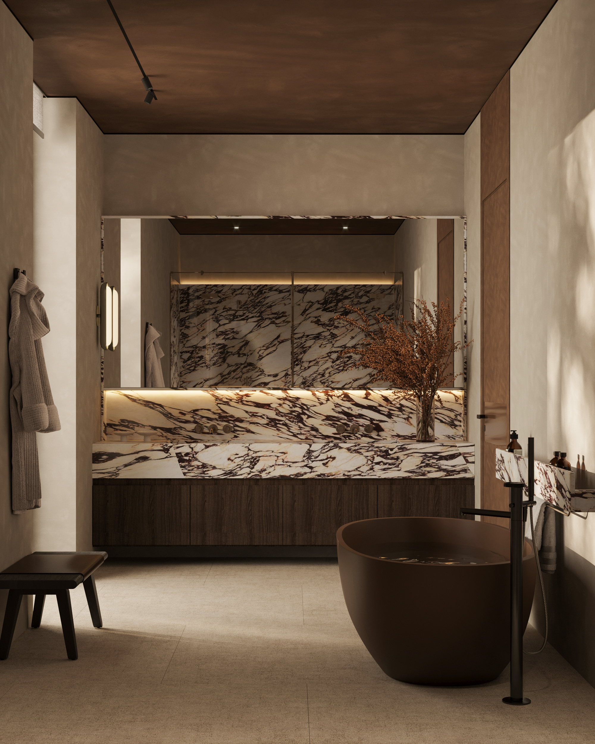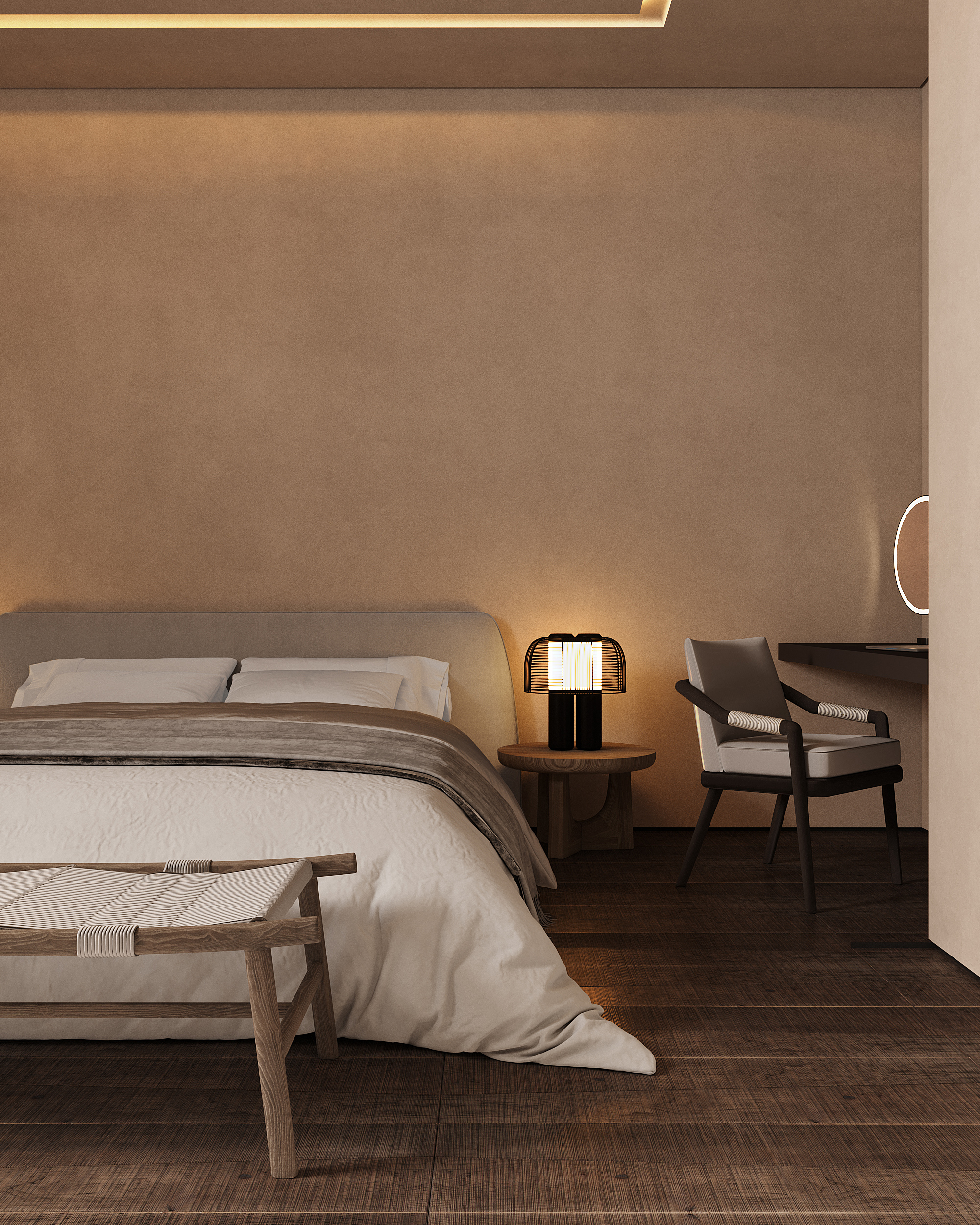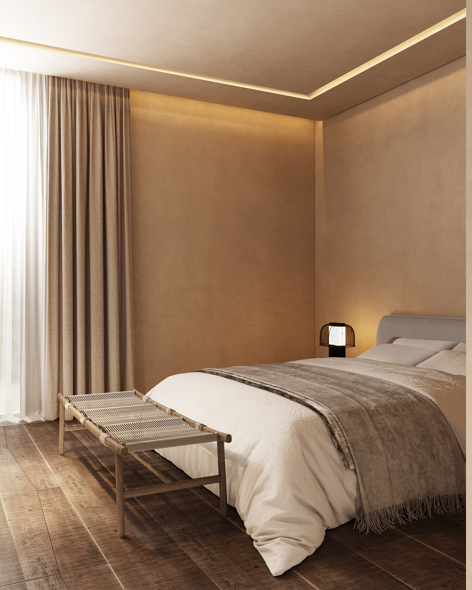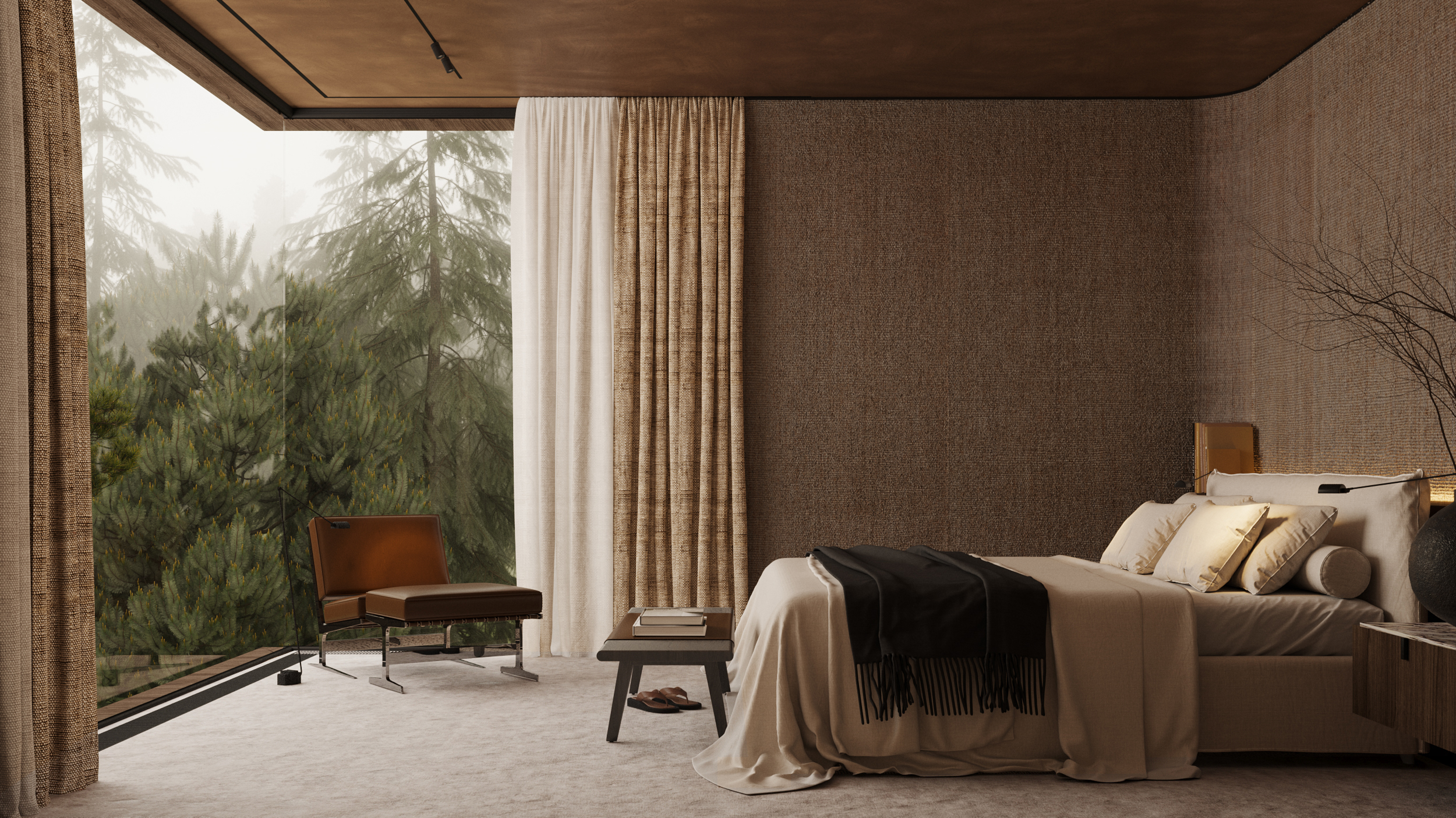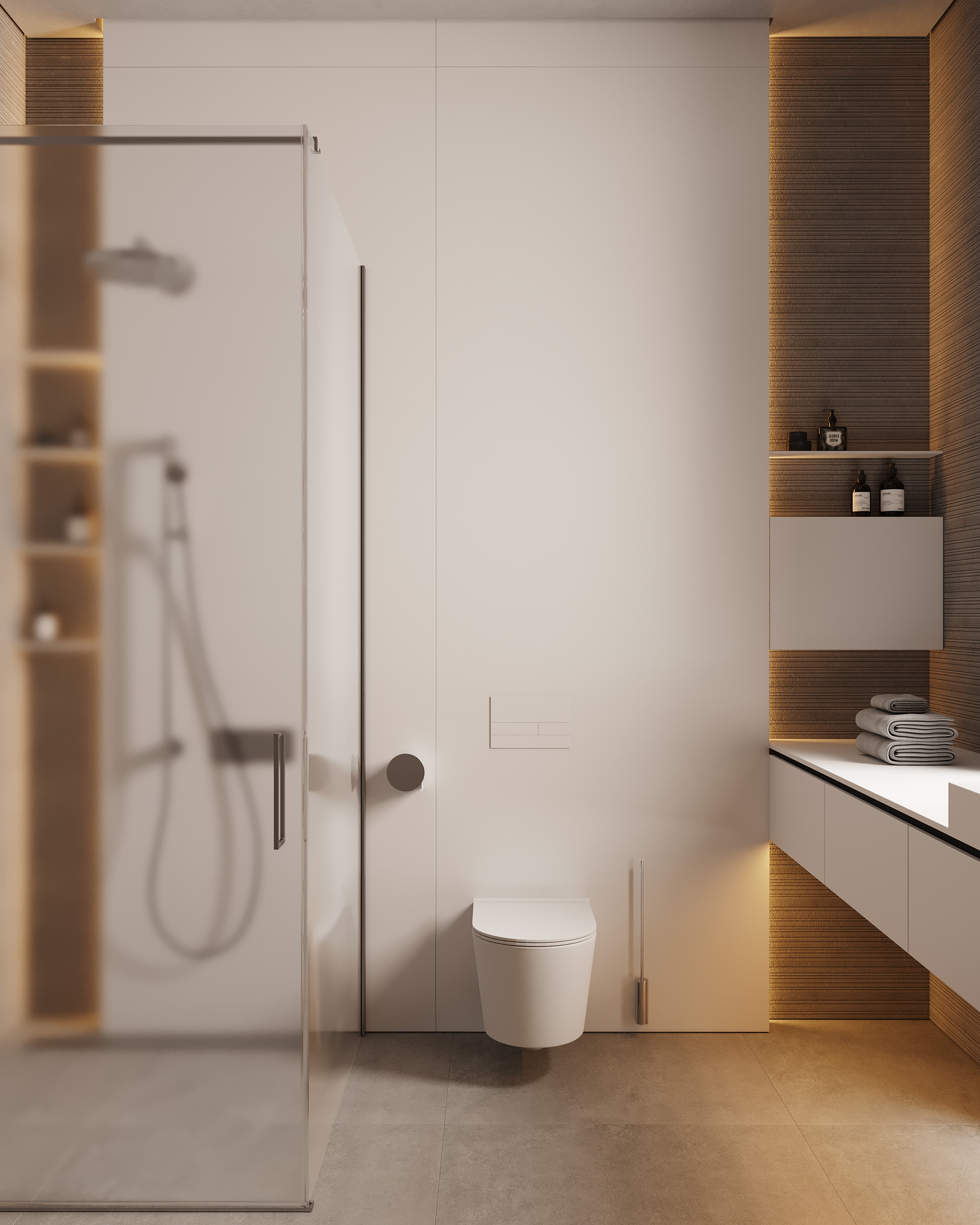 Приватность и комфорт – главные приоритеты при проектировании второго этажа резиденции. Здесь расположены три отдельных блока спален, каждый из которых представляет собой полноценное жилое пространство с собственным санузлом и просторной гардеробной.